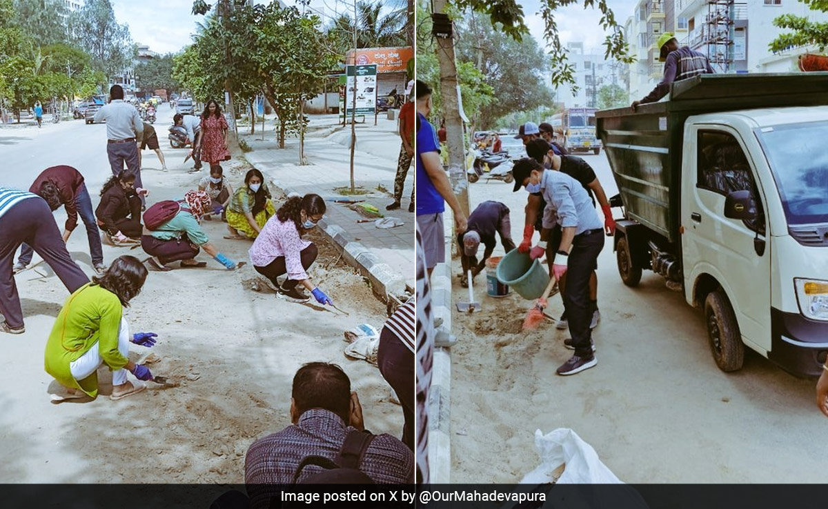 The wonderful act of community service was praised by social media users. One user wrote, ''Techies in Bengaluru work for corporates during weekdays, earn, pay taxes, and spend their weekends fixing BBMP's neglected issues.''