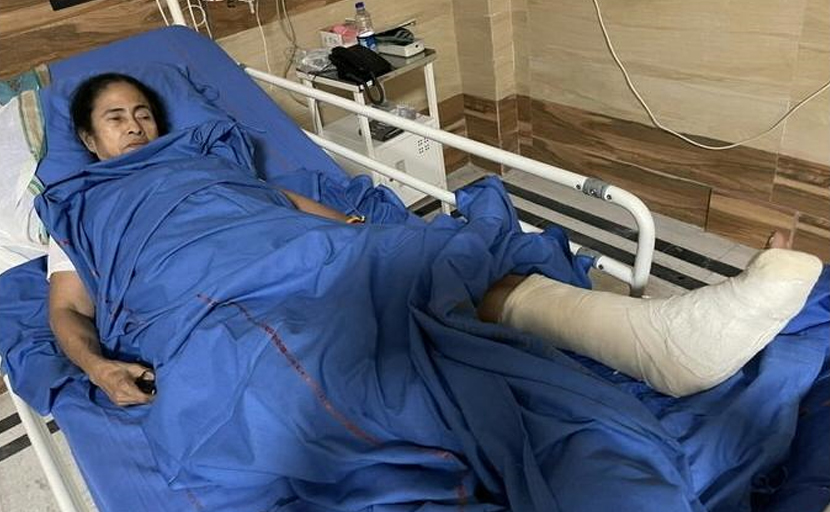 Ms Banerjee, whose foot was badly injured, had to rush back. Before starting for Kolkata, she had told reporters that four-or five unknown people pushed the door against her car and the door shut on her.