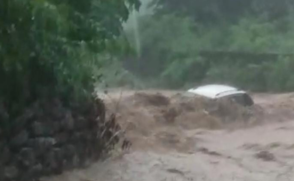 A car was washed away into a river as Uttarakhand continues to reel under the impact of heavy rainfall.