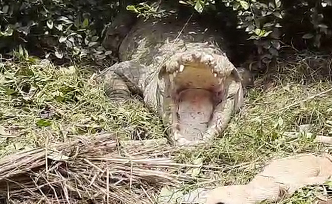 A video of the rescue operation shows the villagers trying to drag the crocodile using a rope. They managed to drag the crocodile out of the residential area and tied it to a tree before calling forest officials. The forest department managed to send the crocodile back into the river.