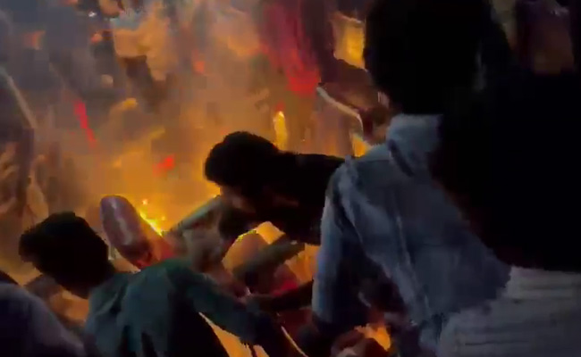 Fans celebrating superstar Prabhas's birthday inside a movie theatre in Andhra Pradesh lit firecrackers at a special screening of his film 'Billa', causing panic as several seats caught fire.