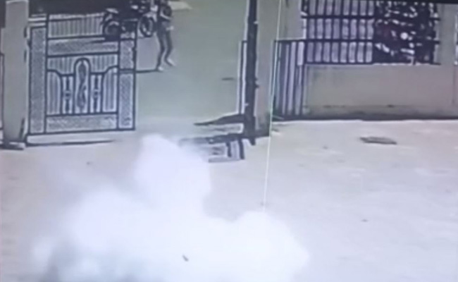 A masked man threw two crude bombs on a government university campus in Madhya Pradesh's Jabalpur. The incident was captured on CCTV camera.