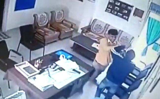 Caught on camera assaulting the principal of the college he teaches in, a professor at Ujjain in Madhya Pradesh now faces a police case under charges of assault and intimidation.