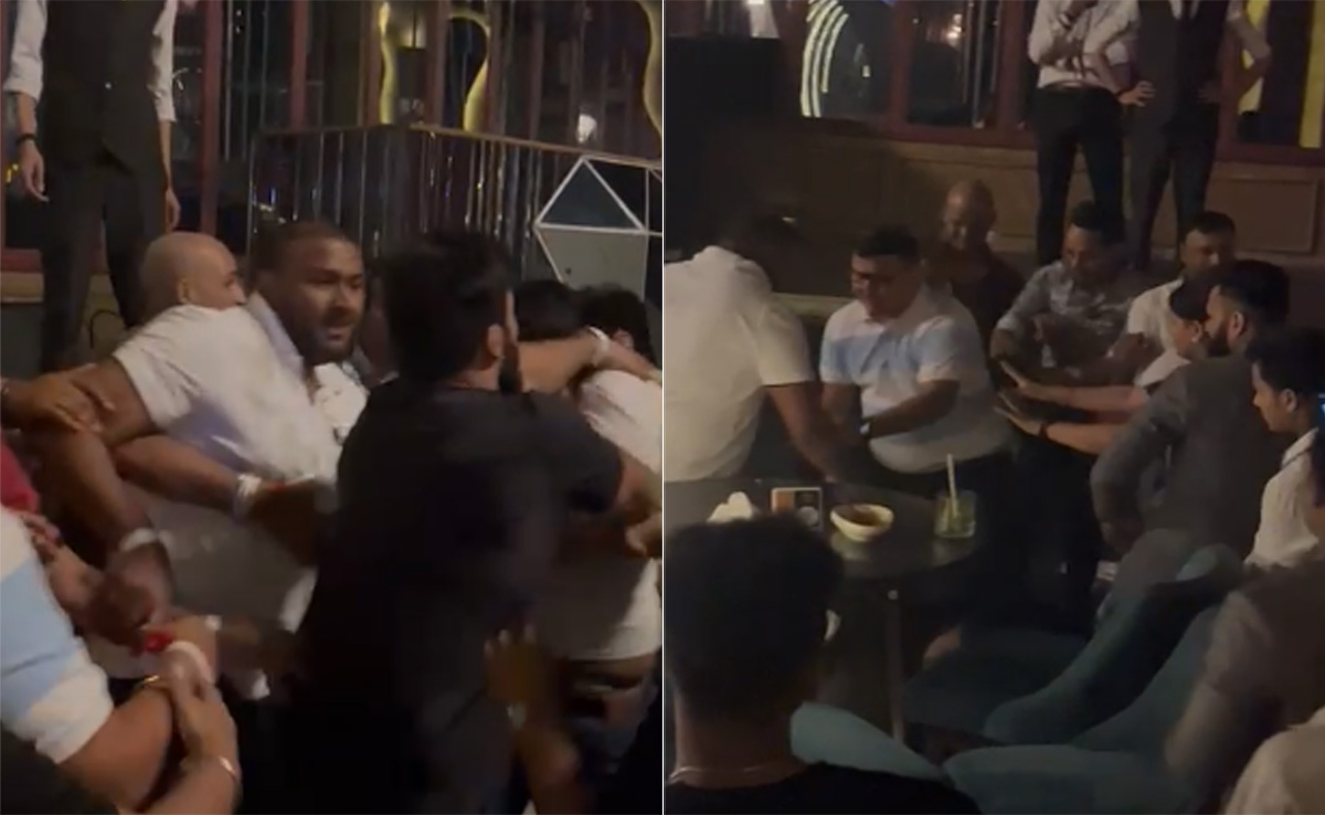 Visuals of the incident that have surfaced show the men under the influence of alcohol, pushing, kicking, and shoving each other while hurling abuse and creating a ruckus. Not only that, alcohol bottles were also being thrown at each other. The reason for the fight is not known yet.