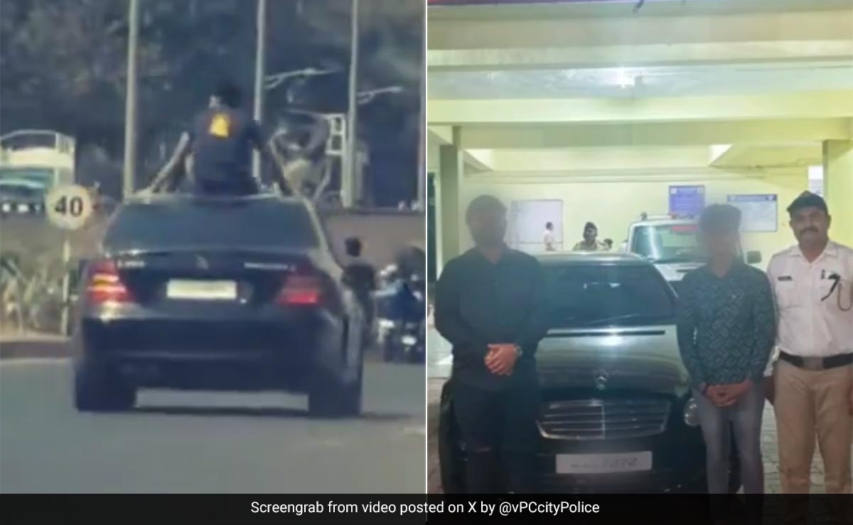 Pimpri-Chinchwad police took swift action after a video of two men performing a dangerous stunt on a moving car surfaced on WhatsApp and social media. The official Twitter account of Pimpri-Chinchwad police shared a video of two men engaging in ''stuntbaazi'' by sitting atop a moving car on on Telco Road on Thursday. The department also mentioned the ''prize'' that they gave to the duo for their reckless behaviour.