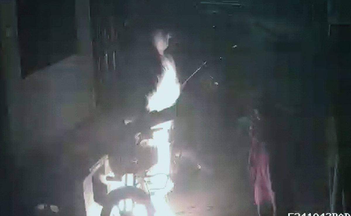 The footage shows the woman, dressed in salwar kurta with a handbag, ambling in a dark alley. She then stops before a motorbike, crouches, disconnects the fuel line, strikes a match and sets the vehicle on fire, shows the video.