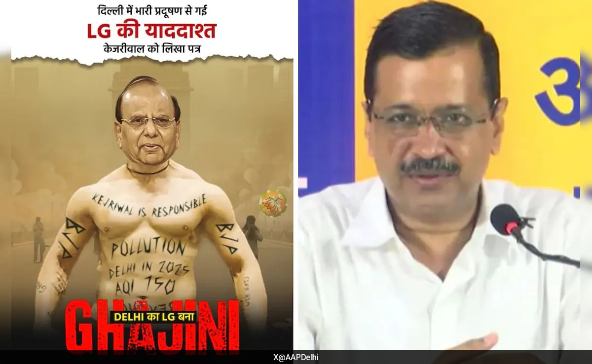 "L - Low Quality; G - Ghajini," the AAP's post read. The edited image showed Saxena's face morphed into the character's body with tattoos reading "Kejriwal is responsible, Pollution in 2025, AQI (Air Quality Index) at 750.