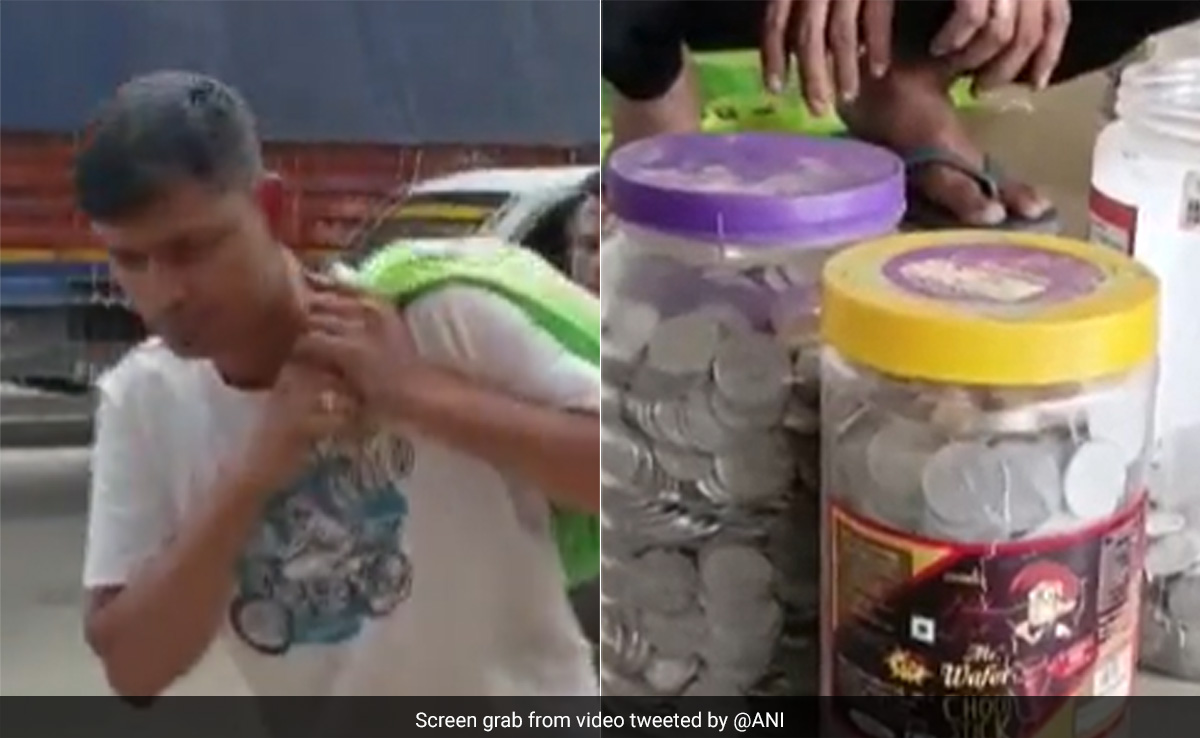 A video shared by news agency ANI shows Mr Hoque heading to a showroom with a sack full of coins to buy a scooter. A few employees of the showroom are later seen counting the coins worth Rs 90,000 that have been stored in jars.