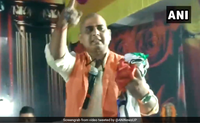 On Thursday, in a video shot by journalists, Mr Diwakar, whose day job is that of a BJP Councillor in the local municipality, can be seen striding around the stage dressed in a saffron jacket and enthusiastically displaying Congress and Samajwadi Party flags to a bemused audience. A few grand gestures later and hey presto... they were turned into a BJP flag to loud cheers from a 1,000-strong audience.