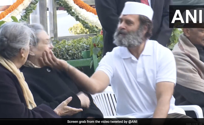 A cute moment between Congress MP Rahul Gandhi and his mother Sonia Gandhi was caught on camera as the party observed its 138th foundation day in the national capital today.