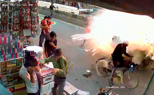 The video shows a busy market area in Dadri area where some people are seen standing in front of a shop. A few seconds later, an e-rickshaw appears on the scene. Everything looks normal, when suddenly there is an explosion in the cartons full of firecrackers kept on the e-rickshaw. Before anyone could understand anything, firecrackers are seen flying randomly leaving everyone in shock.