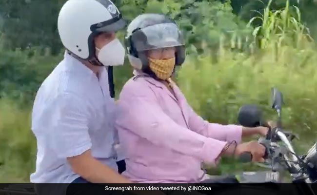 Congress leader Rahul Gandhi arrived at Goa's Azad maidan, a martyrs' monument in the state capital, riding on the pillion of a 'pilot' - a traditional motorcycle taxi in Goa. The state unit of the party tweeted a video showing Mr Gandhi on the vehicle.