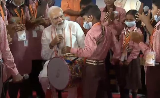 A schoolboy brought a drum with him, which he played in front of the Prime Minister. It drew a smile from him. "Sabash," PM Modi said after the performance ended. Another schoolboy performed complex, flexible yoga moves.