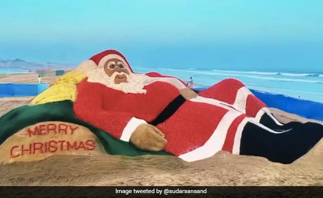 A giant 27-foot sand and tomato Santa Claus installation crafted by well-known sculptor Sudarsan Pattnaik rang in the Christmas cheer in Odisha on Sunday, as revellers flocked to the Gopalpur beach to get a glimpse of the artwork.
