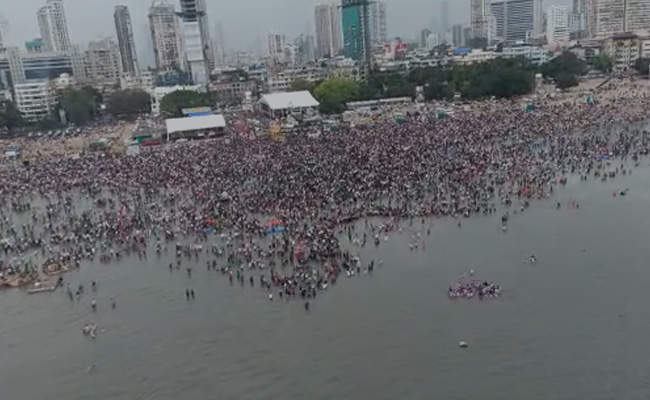 Thousands of people were gathered at Mumbai's Girgaon Chowpatty for Ganesh idols' immersion ceremony, showed a fabulous panoramic 360-degree view captured by a Coast Guard helicopter.