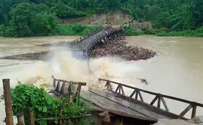 In Meghalaya, a video of a bridge being washed away in amid incessant rainfall that has led to flooding has gone viral on social media.