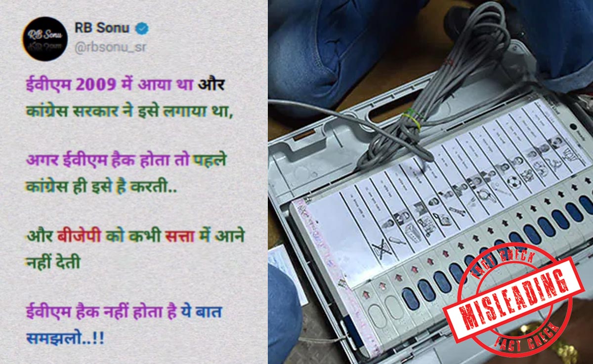 Social media user 'rbsonu_sr', while sharing the viral post (archive link), wrote, "EVM came in 2009 and was installed by the Congress government, if EVMs were hacked then Congress would have done it first... and BJP would have done it. Never lets you come to power... Understand that EVMs are not hacked..!"