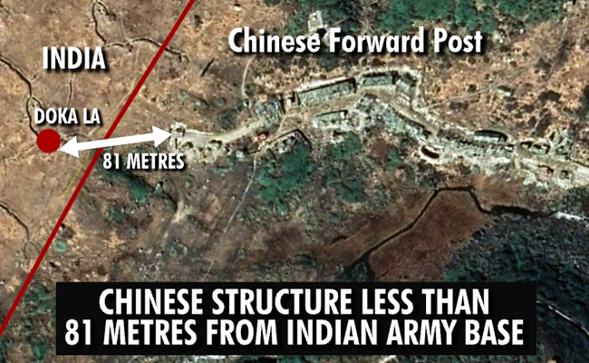 Chinese structures are just 81 metres away from the Indian post in Doka La in Sikkim.
