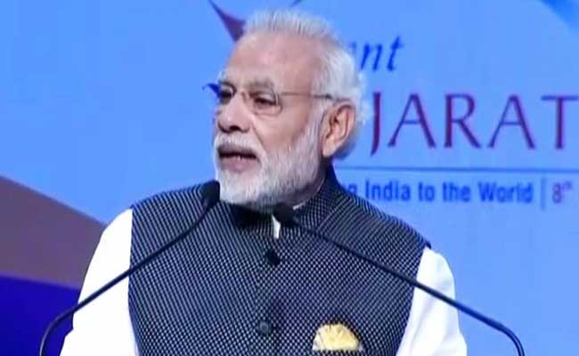 Prime Minister Narendra Modi addressing delegates at the Vibrant Gujarat Summit, 2017.