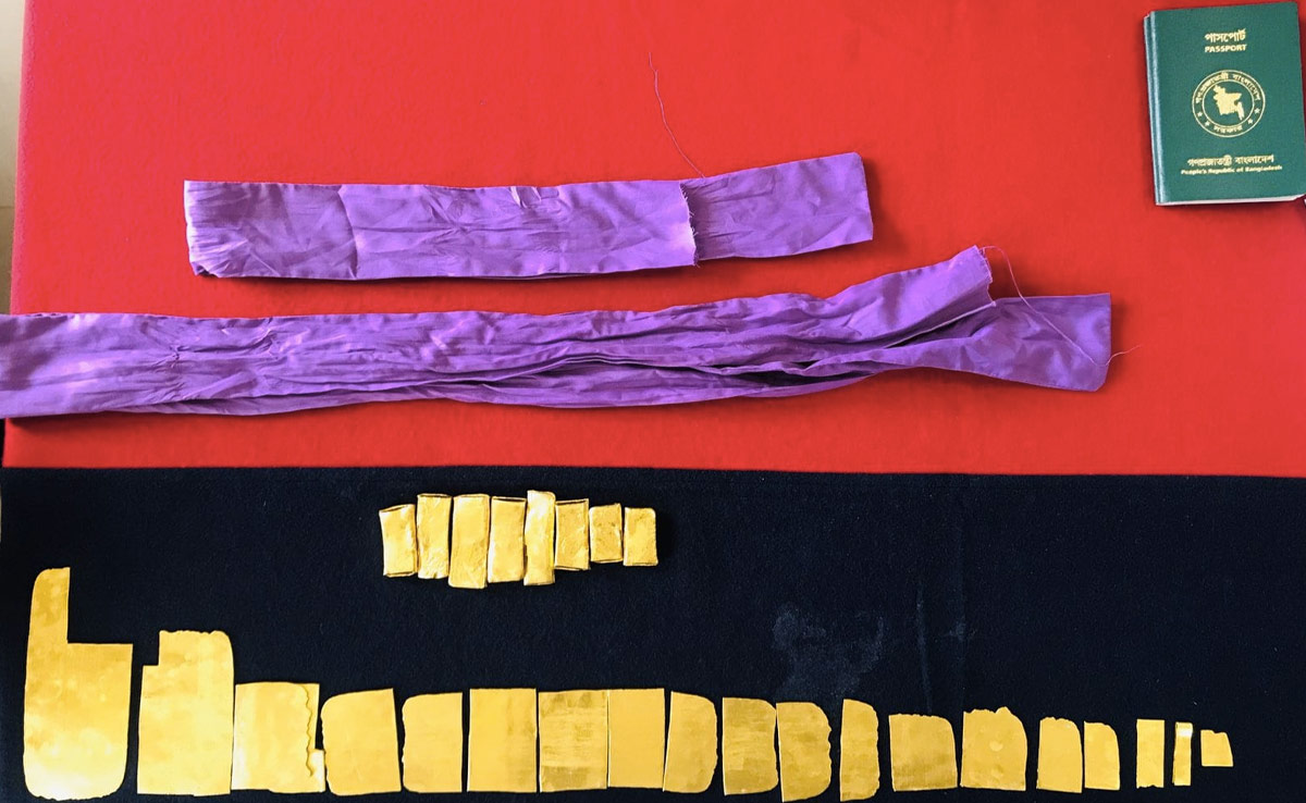 The smuggler, identified as Manika Dhar, 34, had hidden 27 different types of gold bars in a cloth and tied it around her waist. She belongs to the Chittagong district of Bangladesh.