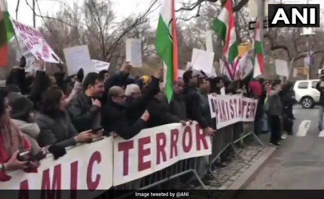 More than a hundred US-based Indians protested outside the Pakistan consulate in New York on Friday against the terror attack which was carried out by Pakistan-based terror outfit Jaish-e-Mohammed (JeM).