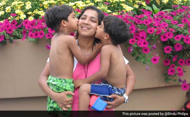 Bindu Philips with her twin boys before they were allegedly abducted by her ex-husband.