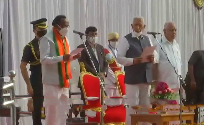 Umesh Katti, Arvind Limbavali, MTB Nagaraj, Murugesh Nirani, R Shankar, CP Yogeshwar and S Angara are the seven ministers who were sworn in to the state cabinet. Governor Vajubhai Vala administered them the oath of office and secrecy at the Glass House of Raj Bhavan at around 4 PM.