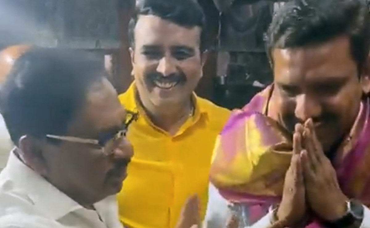 BY Vijayendra, the son of former Karnataka Chief Minister BS Yediyurappa, was seen seeking the blessings of Congress veteran G Parameshwara at a temple in Tumkur on Friday.