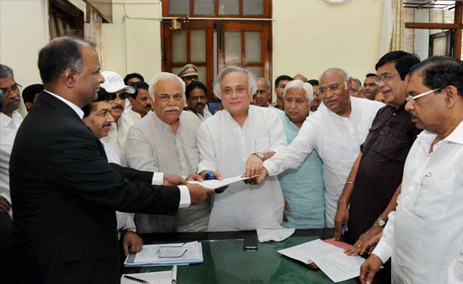 Former Union minister Jairam Ramesh files his nomination papers for Rajya Sabha polls from Karnataka. (PTI photo)