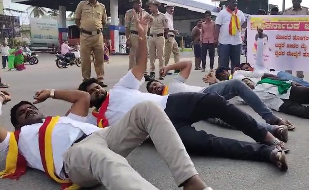 - In Chikkamangalur, protesters entered petrol bunks in bikes and protested, they also burnt the effigy of Tamil Nadu Chief Minister MK Stalin. In Bengaluru, protesters were detained and brought to Freedom Park. In Mandya, protesters rolled on roads in protest.
