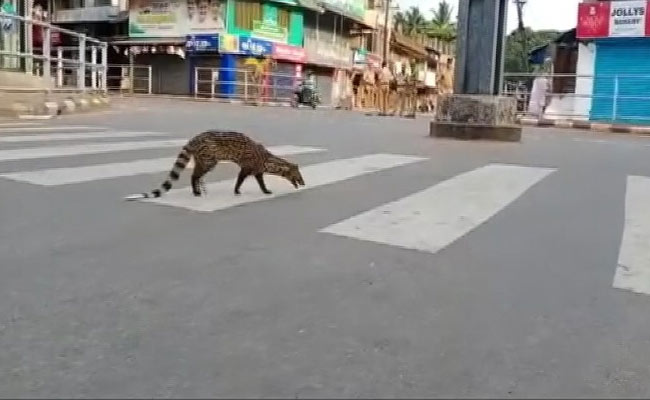 An unusual sight greeted policemen and the few people on the road in Kerala's Kozhikode - a civet taking the zebra crossing.