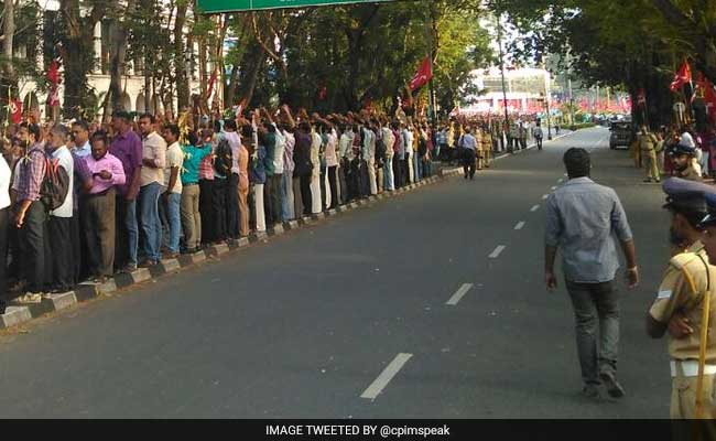 A 'human chain' across in Kerala in protest against hardships faced by people due to demonetisation.