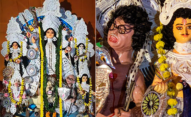 In a Durga Puja pandal near Ruby Crossing, a Mahisasura idol bore resemblances with Mahatma Gandhi as it had a bald head and was dressed in a white dhoti and wore round glasses, creating controversy on the father of the nation's birth anniversary on October 2.