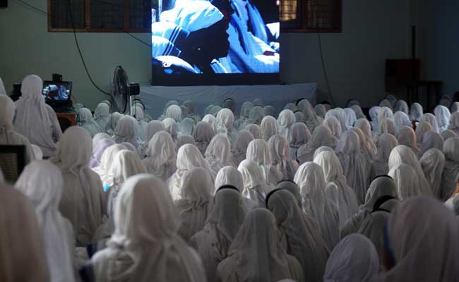 Nuns from the Missionaries of Charity, watch telecast of canonisation of Mother Teresa from Rome. (AFP)