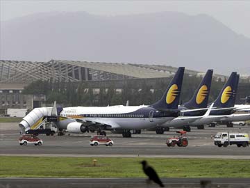Jet Airways aircraft stand on tarmac at the domestic airport terminal in Mumbai