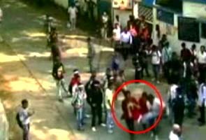 One CCTV camera, located somewhere on a road leading to the jail, shows SFI activists running after a man, apparently Home Guard Biswajit Mondal. Five minutes later, at 2.47 pm, they are seen apparently roughing him up.