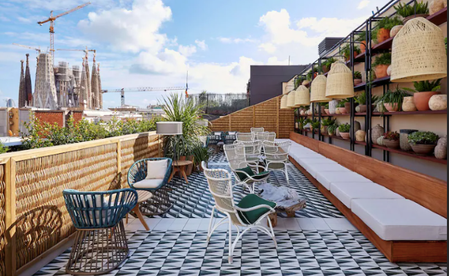 Vibrant, cosy and welcoming - that's the vibe The Hoxton offers at its chic new property in Barcelona, with spectacular views of the Sagrada Familia from its rooftop. Located in the creative neighbourhood of El Poblenou, it houses 240 rooms adorned with terracotta floorings, pastel furnishings, handcrafted tapestries, local artworks and striking furniture to create a soothing Mediterranean-themed ambience. For those planning a long stay, you can book their Homey rooms that feature lounge spaces, dining areas and kitchenettes to really make yourself at home. There's also a rooftop pool and taqueria serving tacos and margaritas, and a sunny pizza terrace and slice shop to park yourself and relax at.