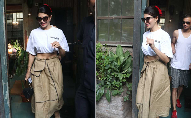 Spring is officially in session and one surefire way to prepare for it is by going shorter, sexier and cooler with your hemlines. While skirts and dresses are the usual suspects to try with, you can also do it with a crop top like Jacqueline Fernandez. The actress was spotted in the city wearing a cropped white t-shirt with a khaki midi skirt and clear ballet shoes. Not only do crop tops look cooler than ever, they are airy for the season and show off Jacqueline's toned abs perfectly.