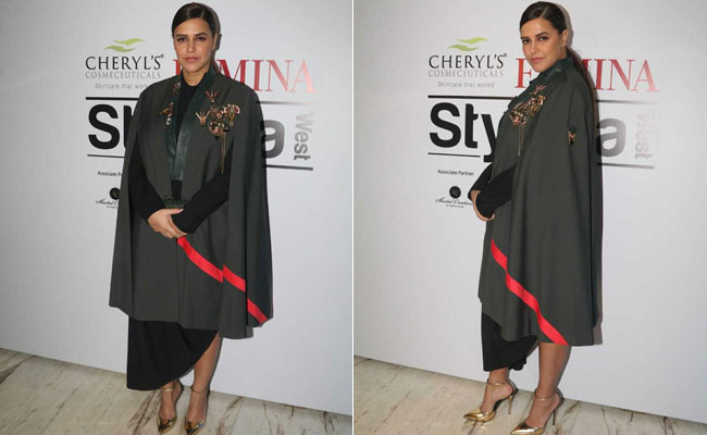 New mom on the block Neha Dhupia stepped out for a Femina Stylista event looking like the epitome of winter chic. Over a black ensemble, she wore an olive Shantanu & Nikhil cape with metallic pins. She also added a sleek ponytail, box clutch and strappy heels with the outfit but with its rugged chic finish and perfectly wintery feel, it was definitely the designer cape that stole the show.