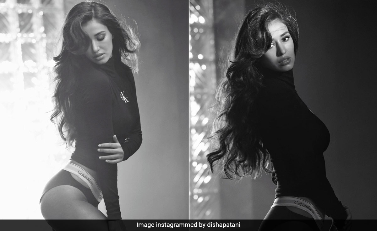 Disha Patani effortlessly stuns in any outfit she wears. Whether it's sarees or sarongs, she knows how to turn heads with her impeccable style. Recently, the actress took the fashion world by storm with a simple yet striking ensemble — a T-shirt and briefs that made a fearless style statement. Dressed in head-to-toe Calvin Klein, Disha rocked a body-hugging tee that hugged her curves like a second skin. The black number exuded chic vibes with a turtleneck design and full sleeves. Opting for a fearless route, Disha ditched the pants and paired the T-shirt with matching briefs. The black briefs featured an elasticated waist with the iconic Calvin Klein logo imprinted on it. The cutouts at the sides added extra oomph to her look. Disha nailed her glam game with glossy lips, arched brows, and fluttery lashes. Softly curled open hair added the perfect finishing touches to this oh-so-sassy look.