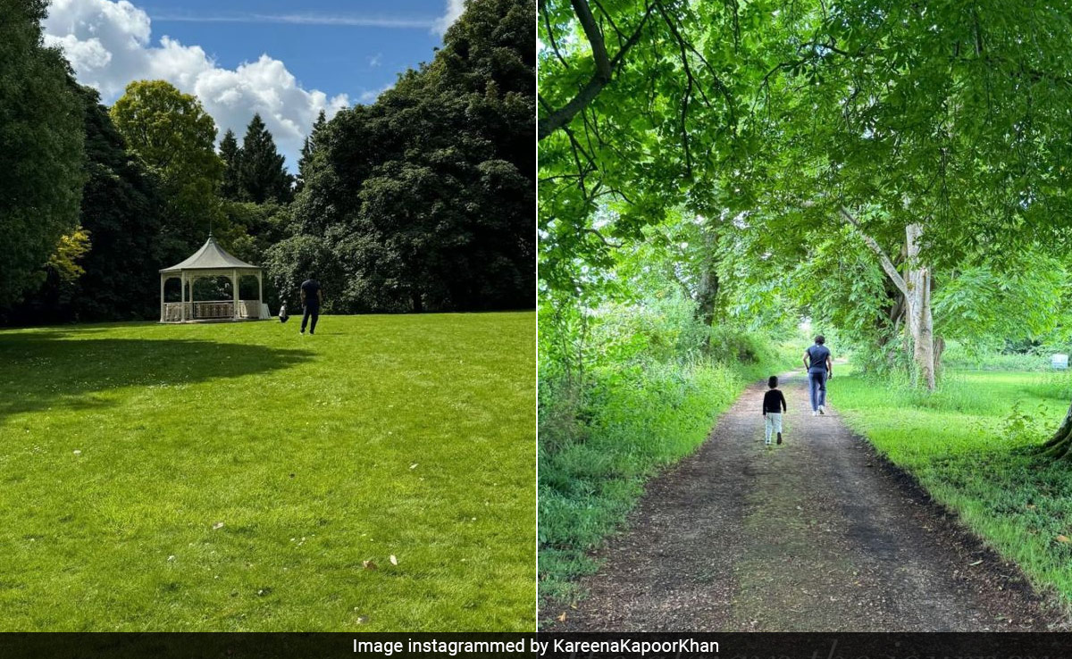A second picture shared by the Crew actress gave us a sneak peek into Saif Ali Khan enjoying what looks like a football game with Taimur. Saif is seen standing at a distance, while Taimur is sitting down on one knee on the lush grass. She captioned this picture, "Father's Day" with a red heart emoji again. In addition, she also gave us a hint into their exact vacation whereabouts by sharing a picture of the Winchester College Kingsgate House.