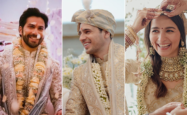Dreamy pastels are clearly Bollywood's most favourite wedding trend. To be honest, we'd be lying if said we aren't mildly obsessed with it ourselves. Right from the outfit choices of the couple to the floral garlands and décor, the design language is often kept pretty in pastels. The latest to join the bandwagon is our couple of the moment - Kiara Advani and Sidharth Malhotra. All-loved up and surrounded by a pastel design language created minimal magic. Fans were soon to notice that Sidharth Malhotra was the last of the 'students' to tie the knot with the love of his life. Alia Bhatt and Varun Dhawan who also made their debuts alongside Sidharth Malhotra picked subtle pastel colours too for their wedding mood board and made it come to life.