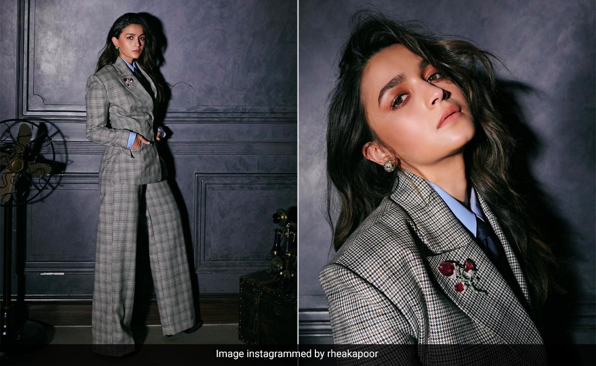 - Alia Bhatt Answers The Business Call In A Suave Grey Checkered Pantsuit