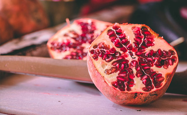 Pomegranate peel is really beneficial for keeping wrinkles at bay and it delays ageing.