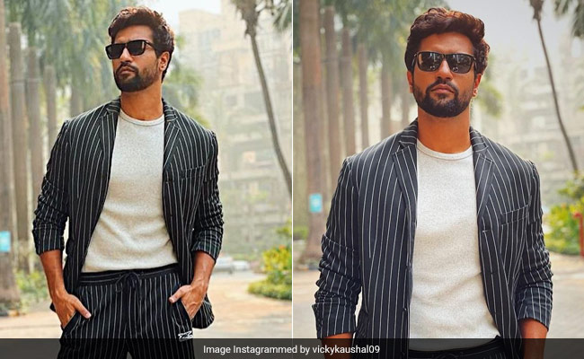 Vicky Kaushal is an actor par excellence and often has us go gaga over his sartorial choices. His charismatic personality and acting prowess makes him one of the most sought after actors. However, his fashion choices are no less than worth taking lessons from. The actor dropped a few pictures of his latest outing and fans are swooning. He is seen wearing black and white striped trousers with a matching blazer. Vicky paired it up with a grey T-shirt beneath the blazer. He opted for white sneakers to complement the look. His stunning black glasses has amplified the fashion statement.