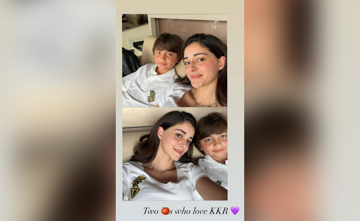 Ananya Panday loves to sprinkle some style everywhere she goes. From grand Bollywood affairs to cricket matches, Ananya arrives with a side of fashion. The Kho Gaye Hum Kahan actress recently enjoyed a Kolkata Knight Riders (KKR) match against Lucknow Super Giants (LSG) in Kolkata. She was accompanied by Shah Rukh Khan's son AbRam and daughter Suhana Khan. While it is not a secret that Ananya and Suhana are BFFs, little AbRam added to the fun and of course, tripled the fashion quo. In a picture dropped by Ananya on her Instagram Stories, she was seen twinning with AbRam in white KKR jerseys. The sporty chic style looked fabulous on them. Ananya teamed up her jersey with denim jeans and a delicate, dainty pendant. She sealed the beauty deal with minimal glam and a rosy glow.