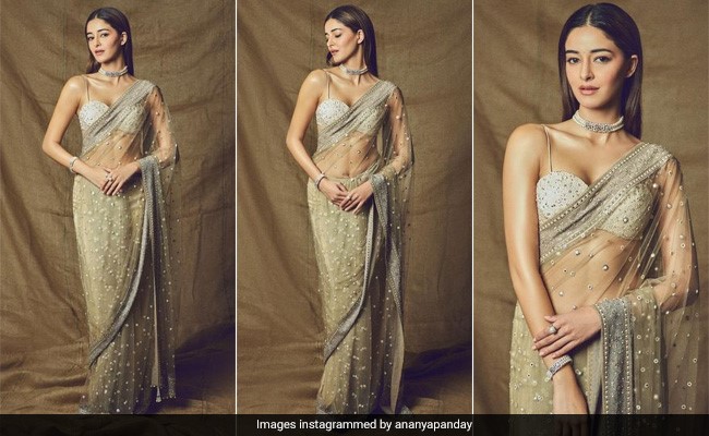 Ananya Panday is a bonafide diva who never backs off from experimenting with her outfits. However, this time, she thought of delivering a traditional look in six yards of grace. Ananya wore a stunning see-through net saree covered with embellishments. She picked a blouse with noodle straps and a deep sweetheart neckline. For accessories, Ananya added a choker set, bangles and statement rings. For makeup, she wore mascara on her eyelashes and a dash of coral glossy shade on her lips. Her middle-parted hair was left open.