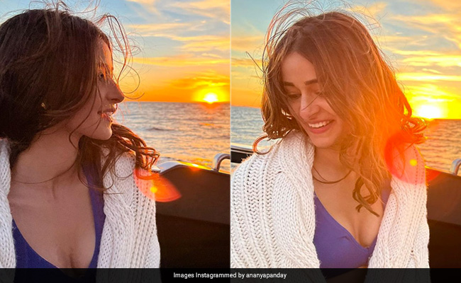 We may be far away from a beach but mentally we're right there - soaking up some sun or even better if we're chasing sunsets. Frankly if we're going to look as good as Ananya Panday does then why not? Ananya Panday is currently in Las Vegas shooting for her upcoming film Liger starring opposite Mike Tyson and in between shots caught the most magnificent sunset behind her. It wasn't just the sunset though that caught our attention. She picked a purple bikini top with a knit throw on top to strike a gorgeous contrast with the orange on the backdrop. Her hair is styled in soft curls with the sunset falling beautifully on her sunkissed highlights. With a view this beautiful, makeup can be given a miss and Ananya Panday did just that.