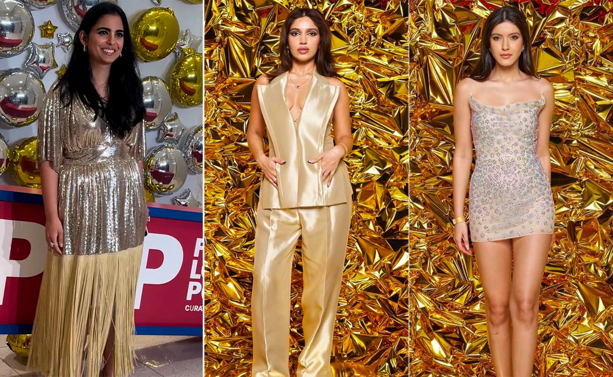 Yesterday's "POP: FAME, LOVE, AND POWER" art exhibition at NMACC, Mumbai was nothing short of a star-studded affair. Many Bollywood celebrities attended the event. It was not just a treat for art lovers; our fashion-hungry souls were also well-fed by the stunning appearances of B-town's fashionistas. Let us dive into each one of them. Kicking off with the super stylish Isha Ambani, she walked into the event dripping in bling. She wore a metallic golden dress crafted by Spanish designer Paco Rabanne. Apart from the metallic magic, there were fringe details at the hemline that just added that extra oomph to her whole vibe. With statement earrings, golden heels and a few rings, she wrapped up her OOTD.
