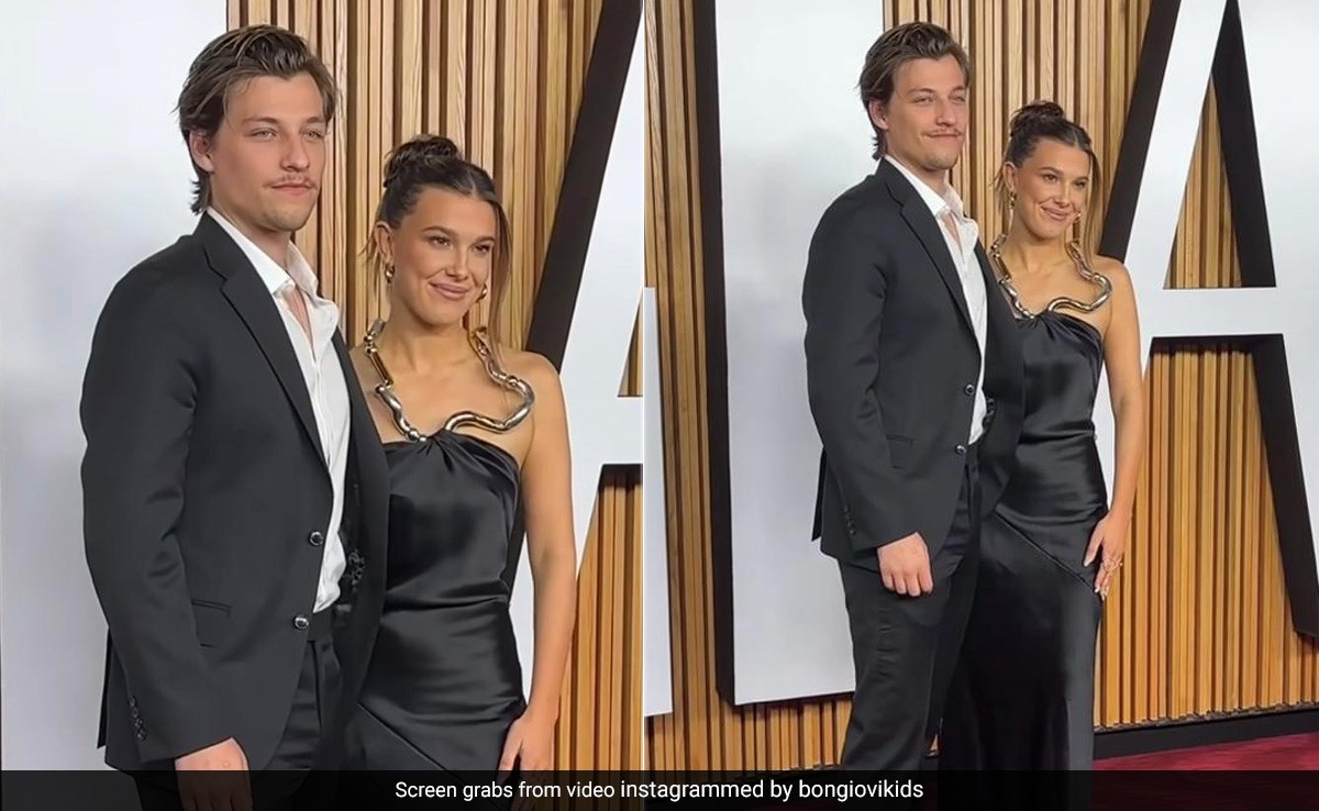 The 2023 Glamour Women of the Year Awards took place in New York this week and was attended by many prominent personalities and global icons. The awards night was indeed a fashionable affair with glamour everywhere, in its truest sense. Millie Bobby Brown was honoured with the 2023 Glamour Women of the Year Award at the gala. The awardee attended the ceremony with her fiance Jake Bongiovi. What's more, is that she was presented the award by Jake's mother Dorothea Hurley. Millie Bobby Brown slayed the red carpet look in a slinky black satin gown by Louis Vuitton. The floor-length outfit featured a body-fitted silhouette with halterneck detailing and a lot of classic glam. The gold and silver metallic embellishment wrapped at the neck accentuated the outfit and added a stylish edge to her look. A pair of studded earrings and statement rings completed her style for the evening. Millie tied her tresses in a messy bun and applied muted-toned makeup including a dash of kohl in the eyes, and matte lip colour. Jake Bongiovi looked absolutely dapper in his three-piece pantsuit. He wore a crisp white shirt with a black blazer and a pair of black trousers and wore formal black shoes with it.